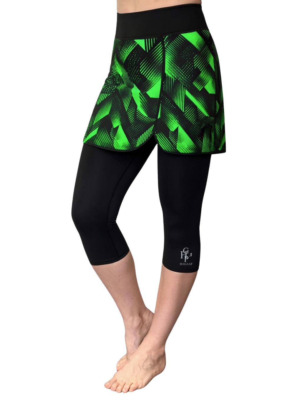 1. Hagaap - 2v1 legíny se sukní zelené geo