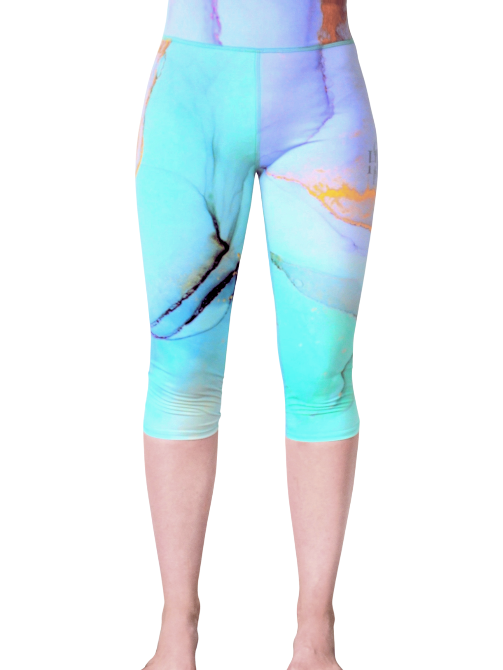 Stylové 3/4 legíny s designem světlého mramoru. Vyrobeny z rychleschnoucího, elastického materiálu, velmi příjemného na dotek. Vyšší pas tvaruje postavu a zakrývá bříško. Ideální pro sport i běžné nošení. Každý kus má jedinečný design.