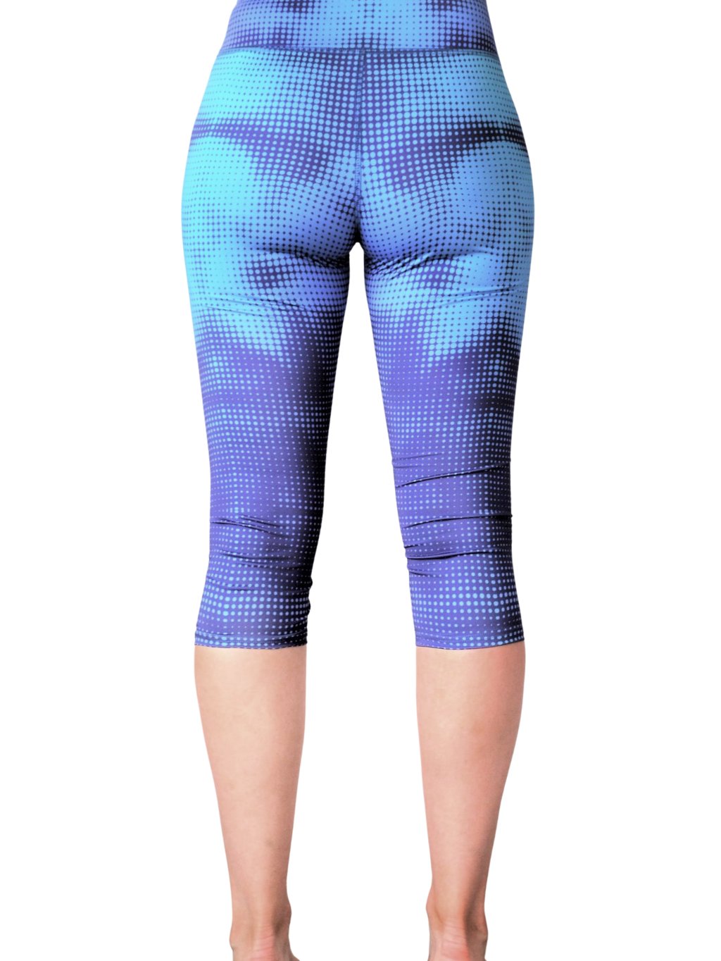 Stylové 3/4 legíny s modrými tečkami. Vyrobeny z rychleschnoucího, elastického materiálu, velmi příjemného na dotek. Vyšší pas tvaruje postavu a zakrývá bříško. Ideální pro sport i každodenní nošení. Každý kus má jedinečný design.