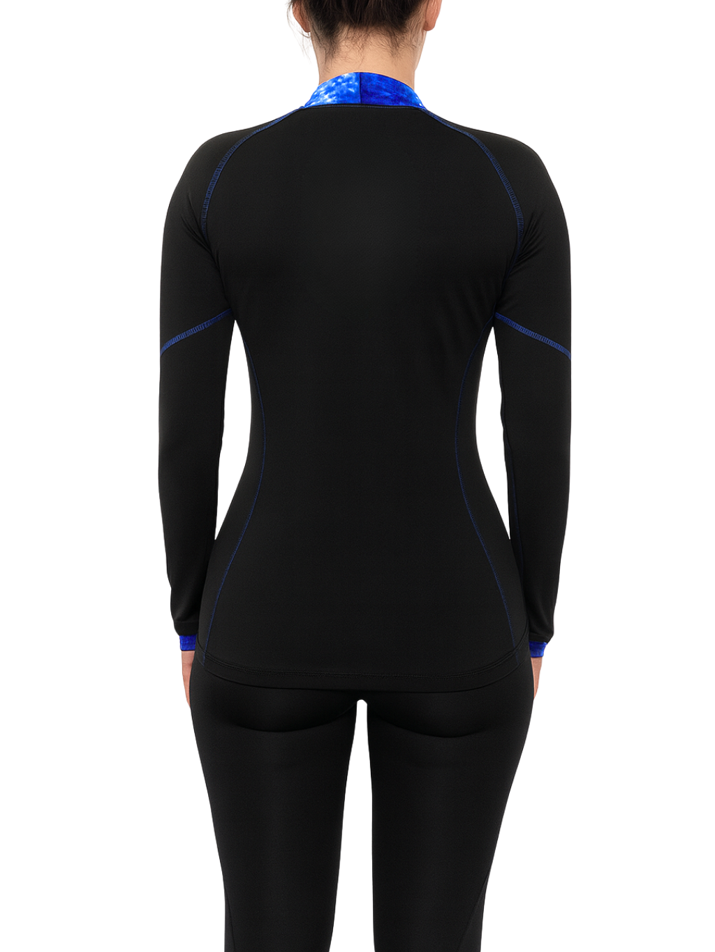 Funkční termo triko, které spojuje pohodlí, moderní design a praktičnost. Černý základ je doplněn výraznými modrými vsadkami, které opticky tvarují postavu a dodávají sportovní eleganci. Přiléhavý střih se přizpůsobí tělu, zvýrazní ženské křivky a díky pružnému materiálu neomezuje při pohybu.