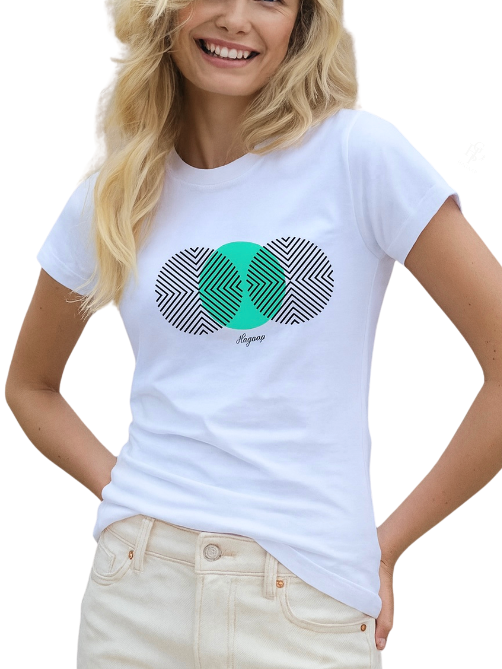 Stylové dámské tričko HAGAAP ze 100% bavlny s jemně projmutým střihem. Na přední straně je moderní geometrický potisk v kombinaci černé a zelené barvy, který dodává tričku originální vzhled. Příjemný, materiál zaručuje celodenní komfort.