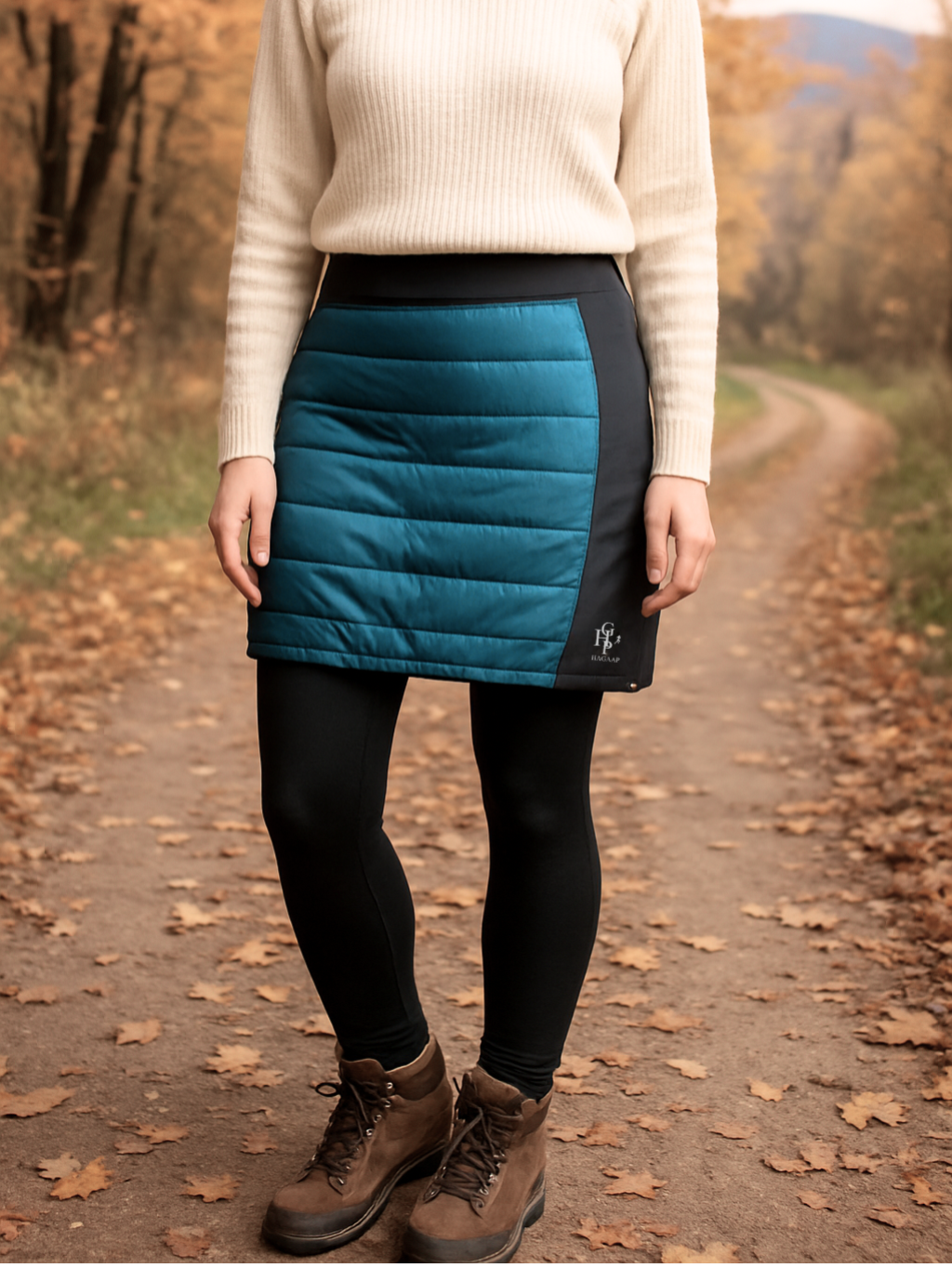 Stylová a funkční lehká sukně v  petrolejové barvě s hřejivým kožíškem která je nejen elegantní, ale také praktická. Ideální nejen do města, ale i na zimní aktivity jako běžky či procházky v přírodě. Tato sukně je módní, ale i funkční doplněk, který oceníte v každé zimní situaci